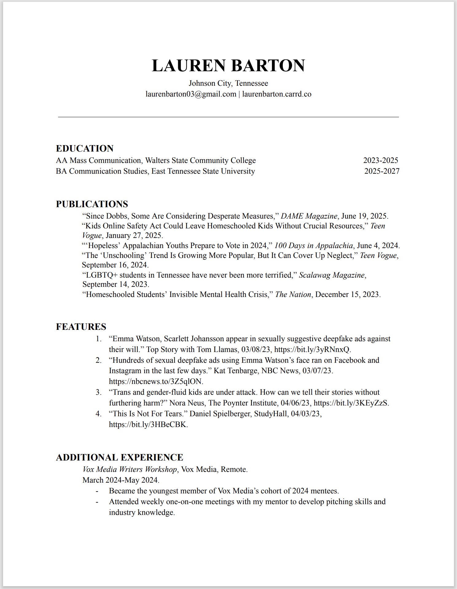 Lauren is an award-winning writer and freelance journalist from Tennessee. They are currently studying Communication Studies with a minor in History at East Tennessee State University, and hopes to one day pursue a master’s degree.